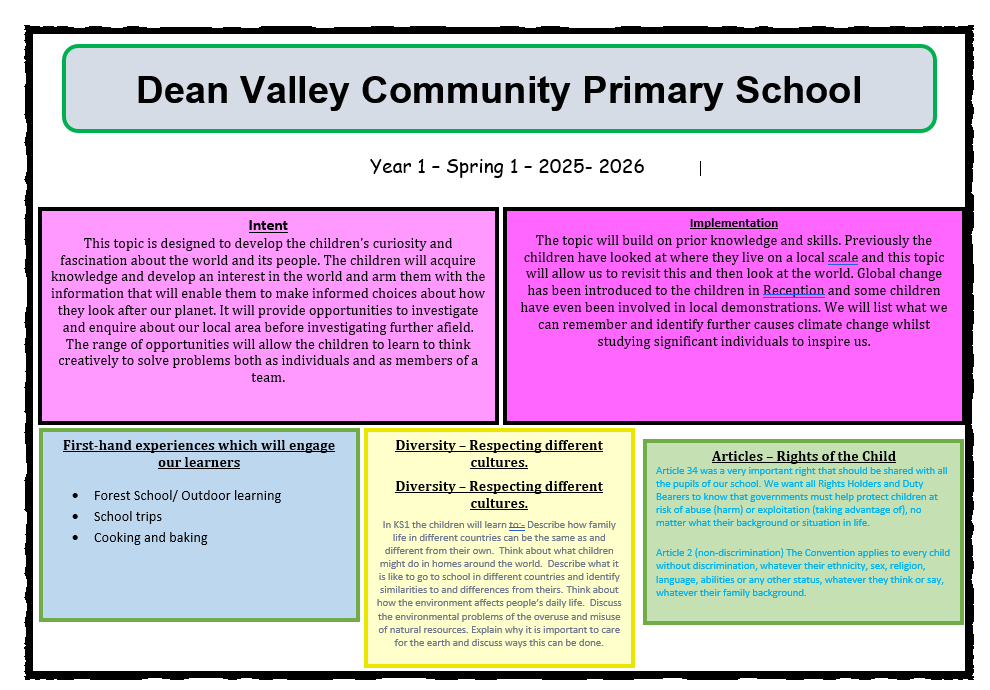 Welcome to the Spring Term. The children have had a fab first term in Year 1, we are very much looking forward to the term ahead. If you are unable to catch me at the door during drop-off or pick-up, please make contact with me via admin@deanvalley.cheshire.sch.uk. I will respond as soon as possible.